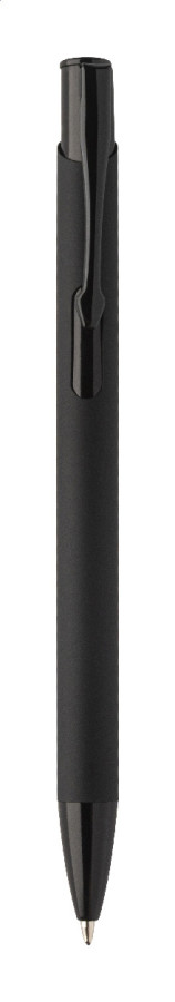 Guľôčkové pero z recyklovaného hliníka s matným telom, textúrovaným úchopom a detailmi ružového zlata. So špeciálnym povrchom na zrkadlové laserové gravírovanie vo farbe ružového zlata. S modrou náplňou.