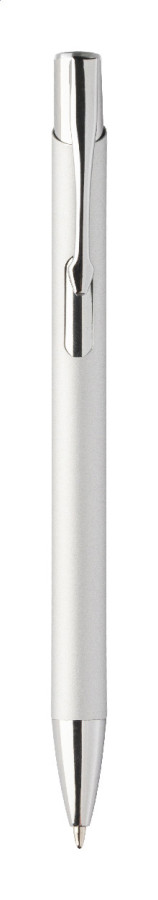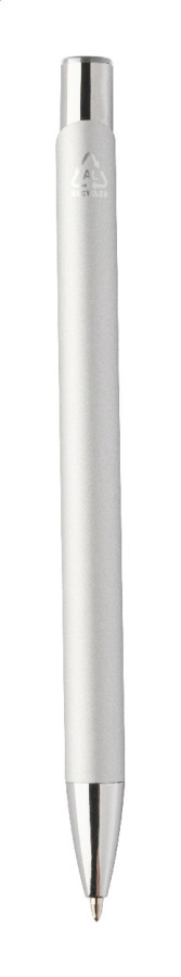 Guľôčkové pero z recyklovaného hliníka s matným telom, textúrovaným úchopom a detailmi ružového zlata. So špeciálnym povrchom na zrkadlové laserové gravírovanie vo farbe ružového zlata. S modrou náplňou.