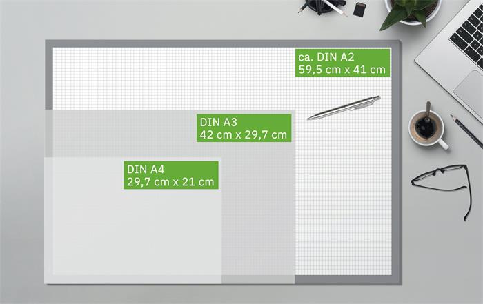 s trojročným kalendárom (2026/2027/2028) -štvorjazyčný: angličtina, nemčina, francúzština a holandčina -veľkosť: približne A2 -odolný, protišmykový a vďaka masívnej kartónovej zadnej doske úplne rovno leží -použiteľný aj ako podložka pod myš -30 listov -farba: biela -s certifikátom FSC