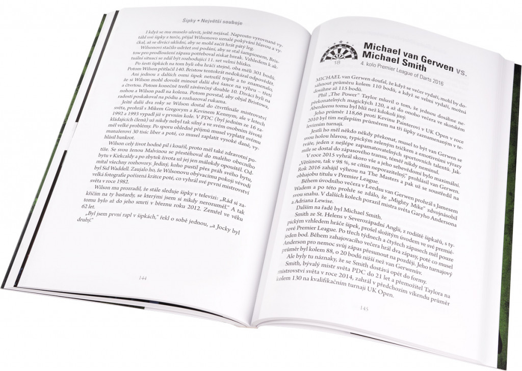 Autor tejto knihy Matt Bozeat s prispením najslávnejších hráčov šípok rozpráva príbehy ukryté v 50 najväčších zápasoch histórie tohto športu. Kniha zahŕňa aj exkluzívne rozhovory so 16 majstrami sveta, okrem iných s Michaelom van Gerwenom a Philom „The Power“ Taylorom, ktorí spomínajú na dramatické a vrcholové okamihy svojej hviezdnej kariéry.