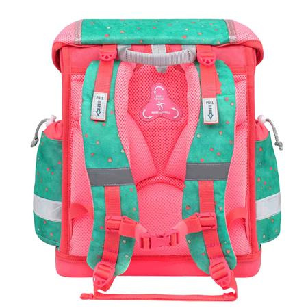 Ergonomický dizajn: -Ergonomicky tvarovaná školská taška s priedušným, polstrovaným chrbtovým systémom, ktorý zabezpečuje maximálne pohodlie a pomáha predchádzať bolestiam chrbta. Ergonomickú vhodnosť potvrdzuje aj certifikát nemeckého inštitútu AGR. Nastaviteľné popruhy: -odnímateľný a nastaviteľný hrudný popruh, nastaviteľné ramenné popruhy pre dokonalé prispôsobenie -stabilné a pohodlné nosenie -polstrované ramenné popruhy v tvare S, prispôsobiteľné postave dieťaťa, zabezpečujú optimálne usadenie a komfort pri nosení. Premyslený vnútorný priestor: -tri priestranné vnútorné priehradky vhodné aj na zošity a knihy formátu A4, vďaka čomu majú všetky školské potreby svoje miesto – dve bočné vrecká na dáždnik alebo 0,7 l fľašu na vodu. Praktické bočné vrecká:Dve bočné vrecká sú ideálne na uloženie dáždnika alebo 0,7 l fľaše na vodu a umožňujú rýchly a jednoduchý prístup. Jednoducho ovládateľná pracka: -ľahko otvárateľná kovová pracka s reflexným prvkom, ktorý zvyšuje viditeľnosť a bezpečnosť dieťaťa v cestnej premávke. Superľahká konštrukcia: -hmotnosť tašky je len 930–990 g, takže zbytočne nezaťažuje ramená ani chrbát dieťaťa. Európska výroba: Produkt je navrhnutý a vyrábaný rodinnou firmou v Európe už od roku 1965, čo zaručuje jeho vysokú kvalitu a spoľahlivosť. Ideálna voľba pre rodičov, ktorí kladú dôraz na ergonomickú, bezpečnú a ľahkú školskú tašku pre svoje dieťa.