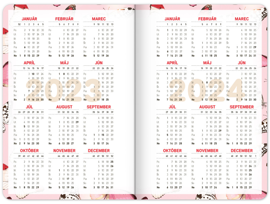 Školský diár Motýliky (september 2023 – december 2024), 9,8 × 14,5 cm