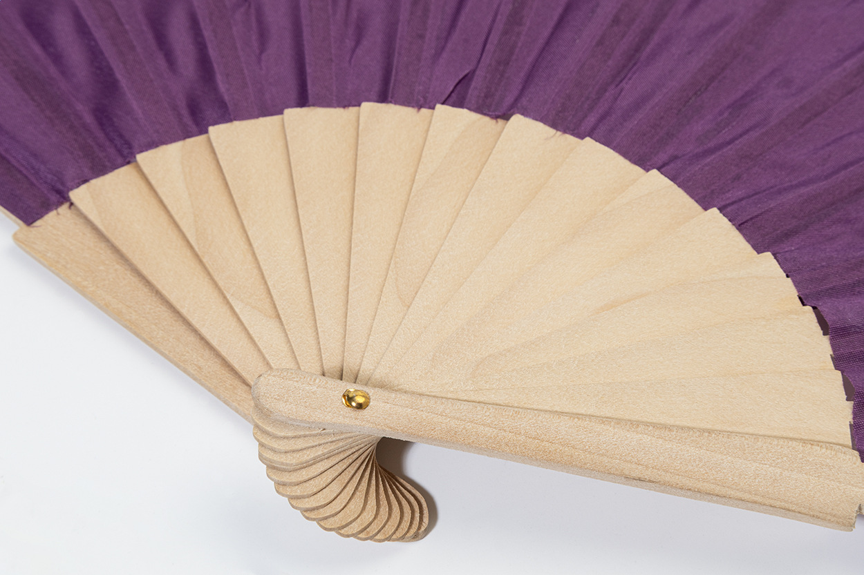 Vejár z RPET polyesteru s drevenými rebrami.