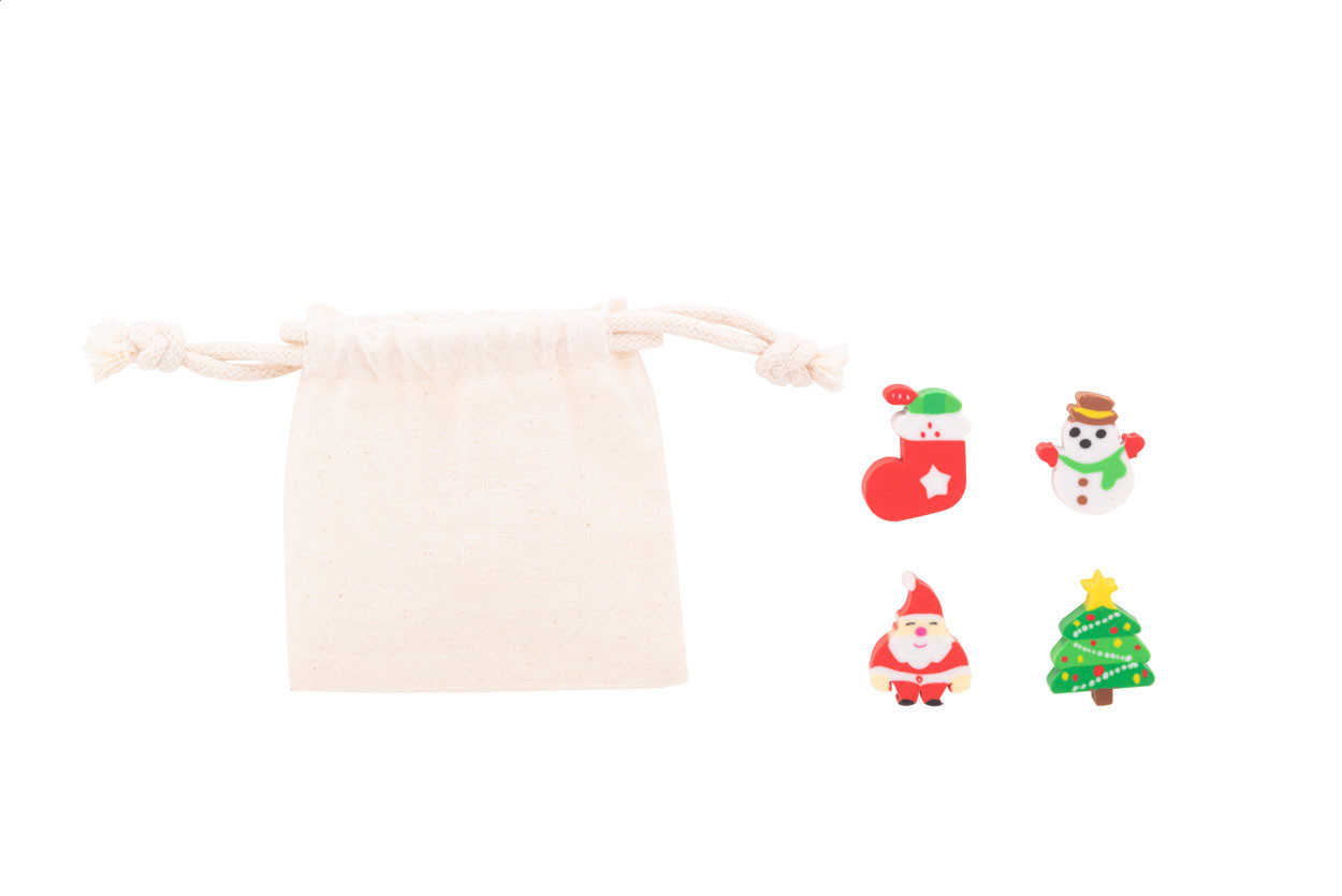 4dielna sada gúm vo vianočnom dizajne, v bavlnenom vrecúšku.
