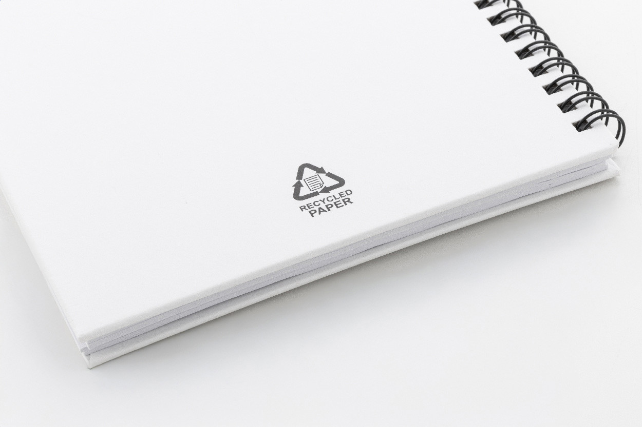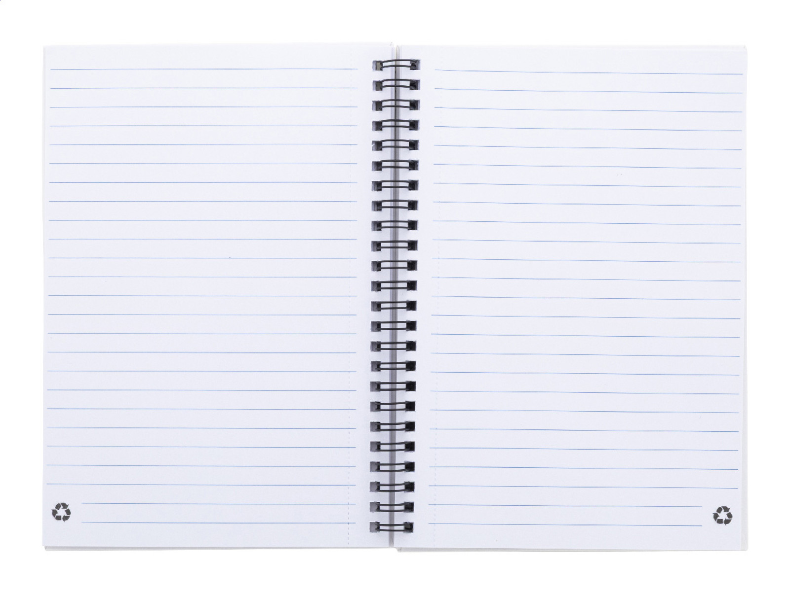 Špirálový blok A5 s 80 linajkovými listami z recyklovaného papiera.