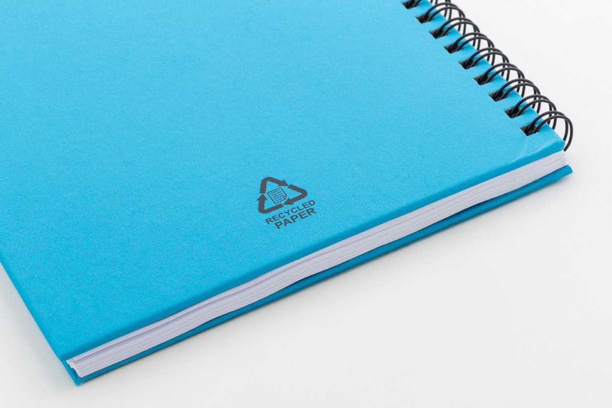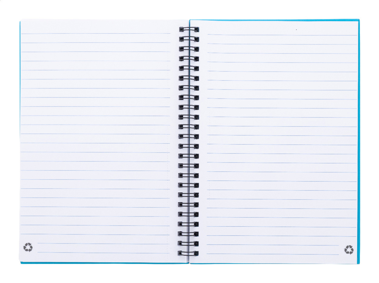 Špirálový blok A5 s 80 linajkovými listami z recyklovaného papiera.