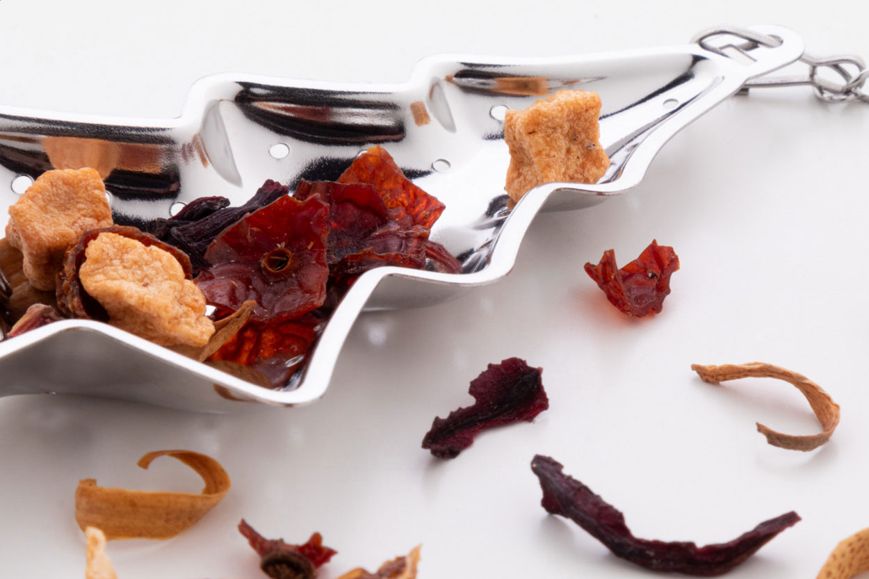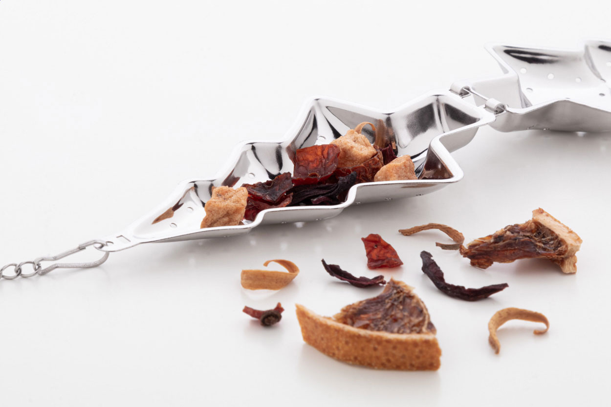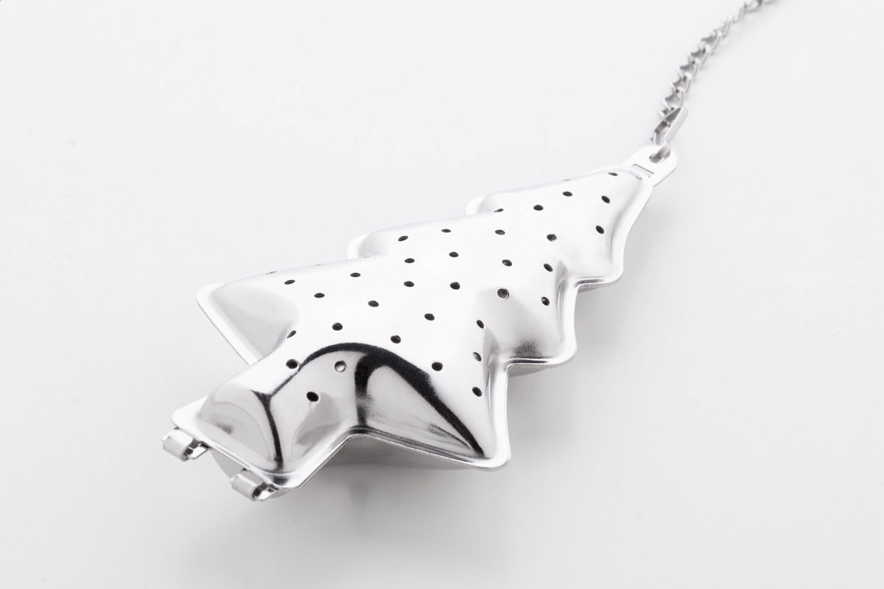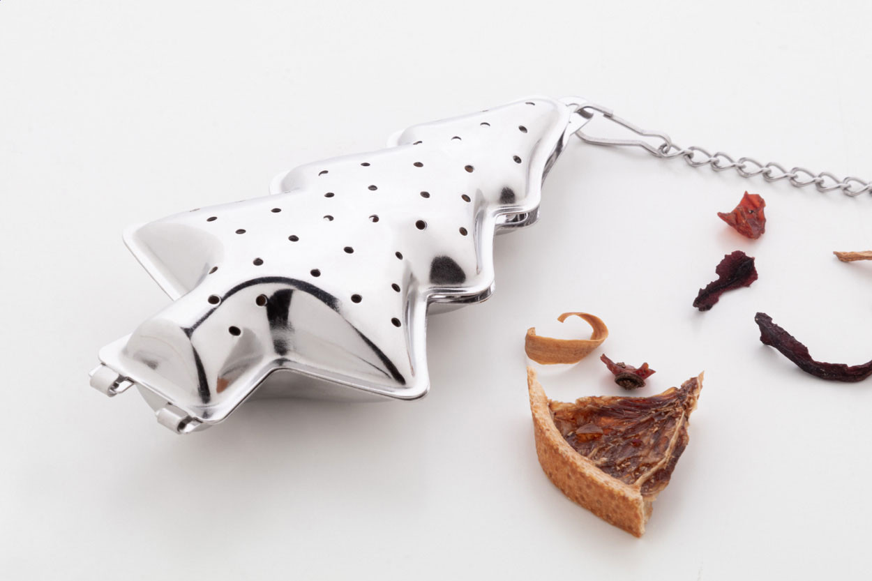 Nerezové čajítko na vianočný čaj s retiazkou a klipom. S potlačiteľnou plochou na jednej strane.