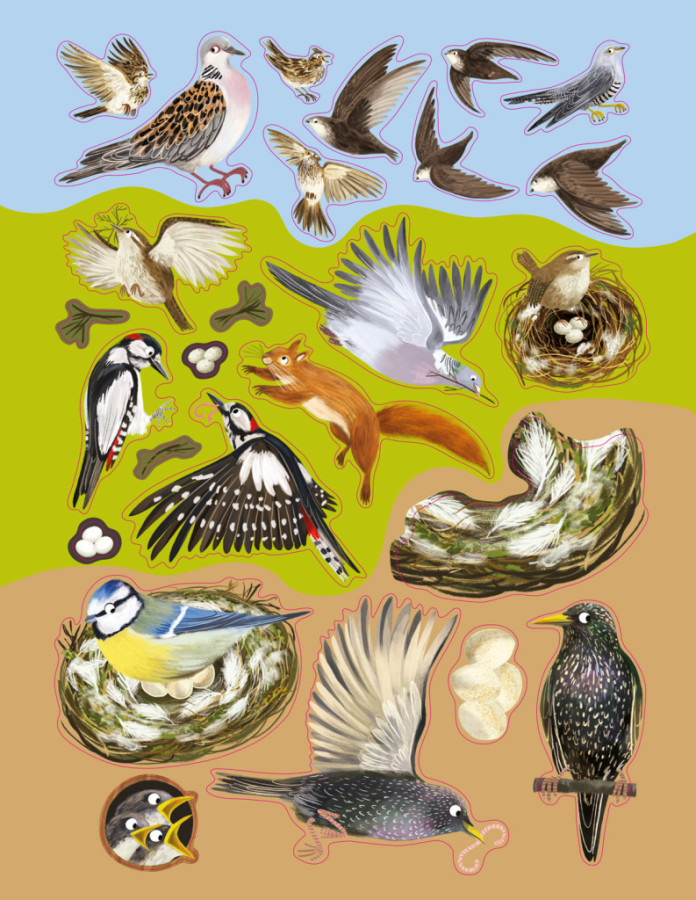 Vydajte sa na dobrodružnú výpravu do vtáčej ríše s knižkou plnou samolepiek! Navštívte operence v ich hniezdach, vydajte sa s nimi do oblakov… Hlboko v lese, či neďaleko ľudských obydlí, vysoko v korunách stromov, na brehoch alebo na hladinách vôd, tam všade objavíte vtáčiky speváčiky. V tejto knižke sa zoznámite s malými záhradnými spevákmi, ale aj dravými predátormi, dozviete sa o nich mnoho zaujímavostí a navyše zažijete plno zábavy pri dotváraní 11 prekrásnych prírodných scenérií pomocou rozkošných samolepiek.