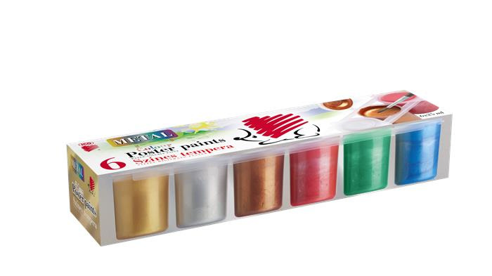 Tempera, v tégliku, ICO "Süni", 6 rôznych kovových farieb