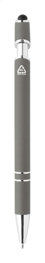Guľôčkové pero a pero na dotykovú obrazovku z recyklovaného hliníka s pogumovaným telom a chrómovanými detailmi. S modrou náplňou.