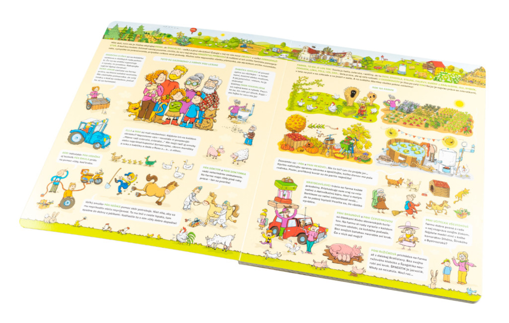 VITAJTE NA FARME U GAZDÍKOVCOV! Akože to na takej farme chodí? Nuž, stále je tu čo robiť a stále sa niečo zaujímavé deje. S malými neposedmi Ellou a Maxom sa ocitnete priamo v centre diania. Deti tu však nie sú samé – sledujte, čo práve robia všetky tie zvieratká a zaujímavé postavičky okolo nich!
