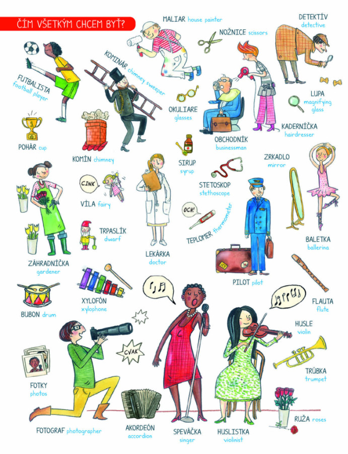 Táto veľká obrázková kniha s veselými farebnými a „čítavými“ ilustráciami môže malých čitateľov sprevádzať celým predškolským obdobím a možno ešte dlhšie... Ponúka nepreberné možnosti využitia. Dieťa sa najprv učí poznávať a pomenovávať jednotlivé predmety na obrázkoch, neskôr si zapamätáva tlačenú podobu slov. Tí najmenší sa podľa naj môžu učiť rozpoznávať farby, starším poslúži ako podklad k prvému čítaniu, prípadne písaniu tlačených písmen. Môže vás ďalej inšpirovať k najrôznejším hrám na precvičovanie krátkodobej pamäte a tiež ukrýva množstvo príbehov – obrázky stačí len pospájať do dejovej línie – fantázii sa medze nekladú! A pre tých najzvedavejších sú tu dokonca všetky slovíčka preložené do angličtiny – a učenie aj hry môžu začať odznova!