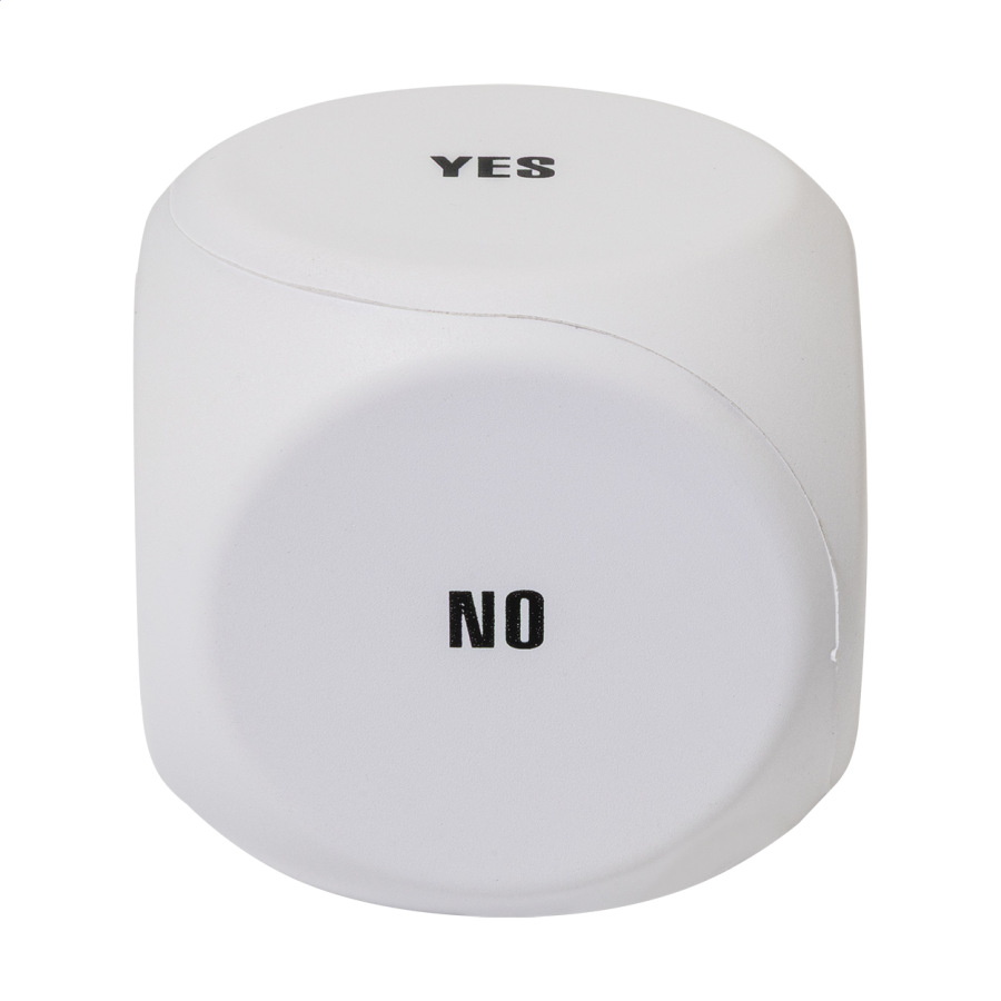 Antistres v tvare kocky z PU peny s motívom rozhodovania. Obsahuje nasledujúce nápisy: Daj si pauzu, Zajtra, Možno, Áno, Nie a prázdnu stranu pre tlač.