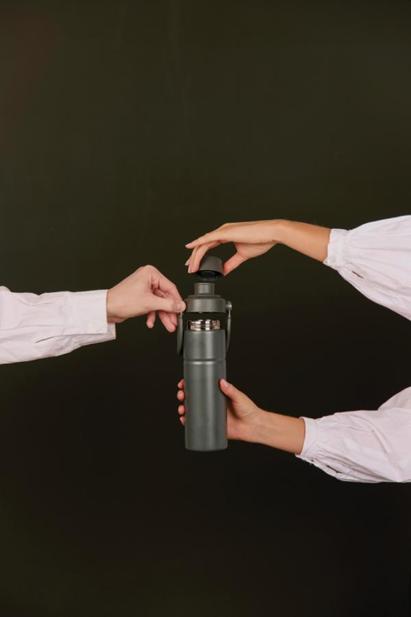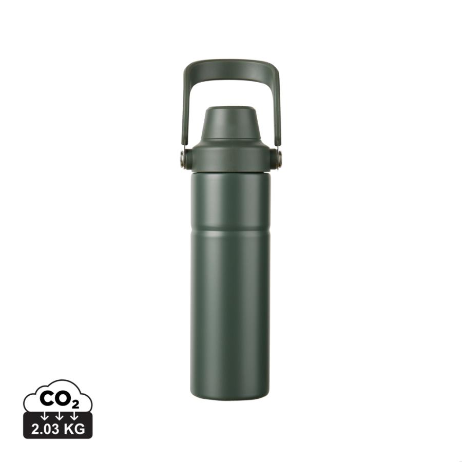 Odolná dvojstenná vákuová fľaša vyrobená z RCS certifikovanej recyklovanej nerezovej ocele s praktickým držadlom. Viečko má dva otvory: horná časť vhodná na pohodlné pitie a väčší otvor na jednoduché dopĺňanie a čistenie. Udrží nápoj studený až 12 hodín a teplý až 4 hodiny. Nie je vhodná do umývačky ani do mikrovlnnej rúry, iba ručné umývanie. Certifikované RCS (Recycled Claim Standard), certifikácia RCS zaručuje, že celý dodávateľský reťazec recyklovaných materiálov je certifikovaný. Celkový obsah recyklovaného materiálu je založený na celkovej hmotnosti výrobku. Tento produkt obsahuje 65% RCS certifikovanej recyklovanej nerezovej ocele.