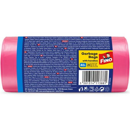 Vrecia na odpadky, s uškom, parfumované, 40 l, 20 ks, 52x61 cm, 16 µ, FINO "Premium handle