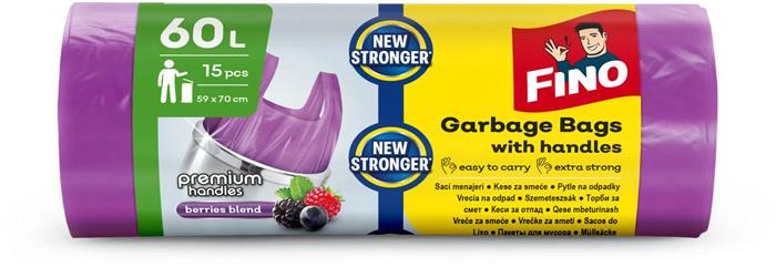 Vrecia na odpadky, s uškom, parfumované, 60 l, 15 ks, 59x70 cm, 16 µ, FINO "Premium handle
