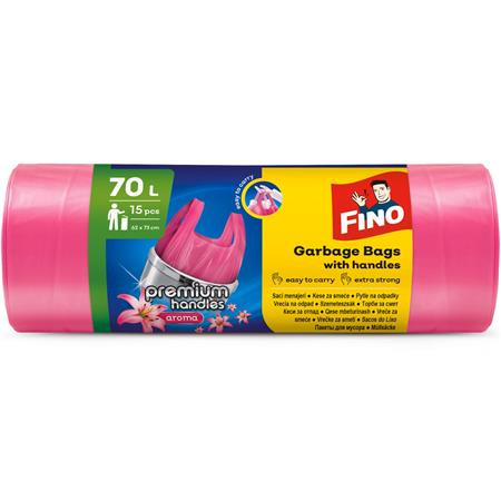Vrecia na odpadky, s uškom, parfumované, 70 l, 15 ks, 62x73 cm, 16 µ, FINO "Premium handle