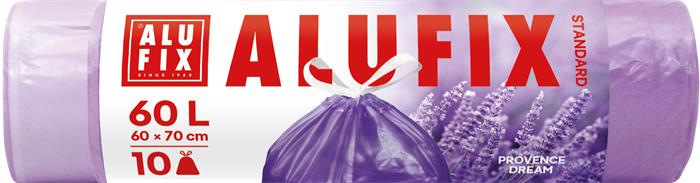 Vrecia na odpadky, zaťahovacie, parfumované, 60 l, 10 ks, 60x70 cm, 15 µ, ALUFIX, levanduľ