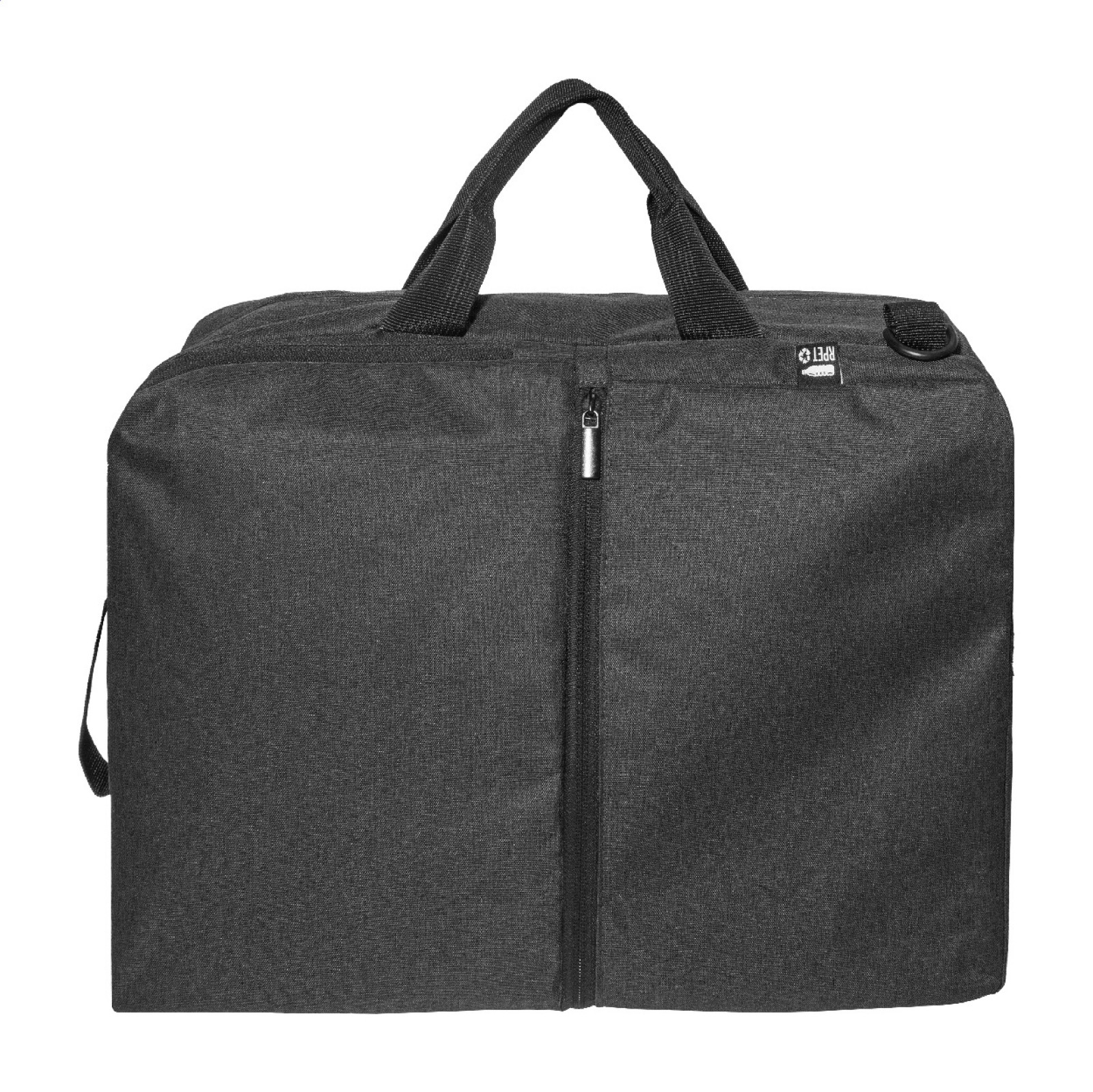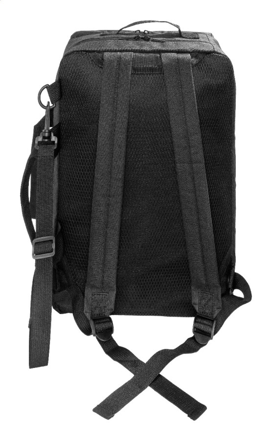 Dvojfunkčný RPET batoh a taška na dokumenty s priehradkou na zips, 2 prednými vreckami na zips a polstrovanou priehradkou na notebook (15"). S polstrovaným chrbtom a ramennými popruhmi. Súčasťou je aj odnímateľný ramenný popruh pre použitie ako taška na dokumenty. 600D.