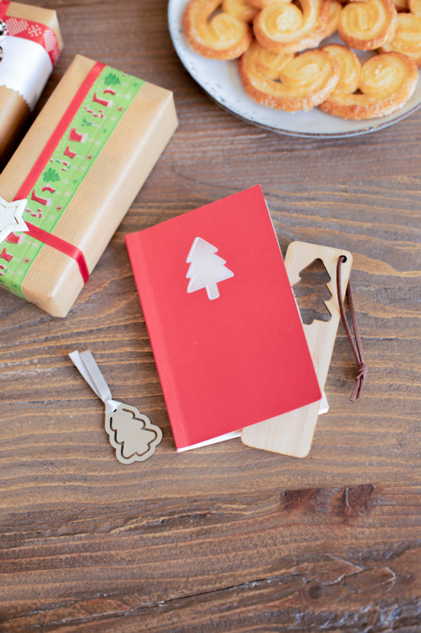 Bambusová záložka do knihy s vyrezaným vianočným motívom a pútkom z PU kože.