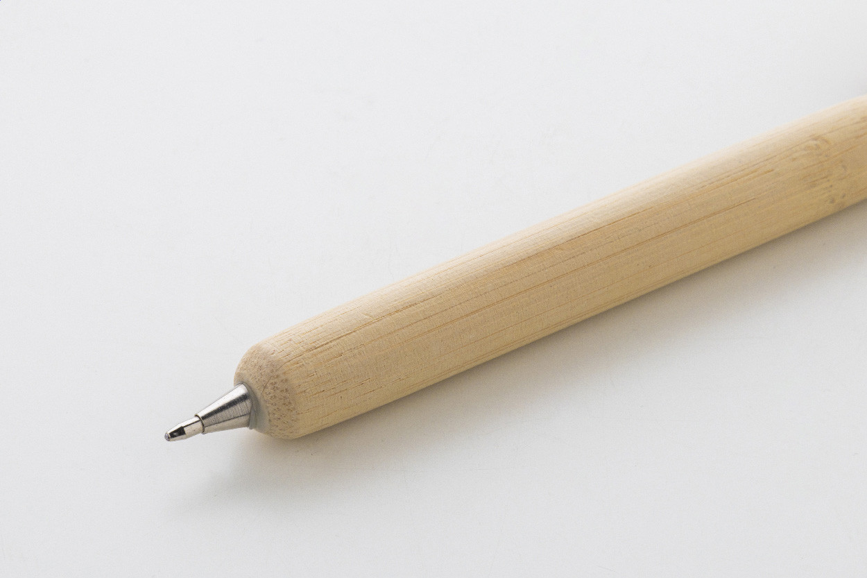 Bambusové guľôčkové pero s vianočným motívom hore. S modrou náplňou.